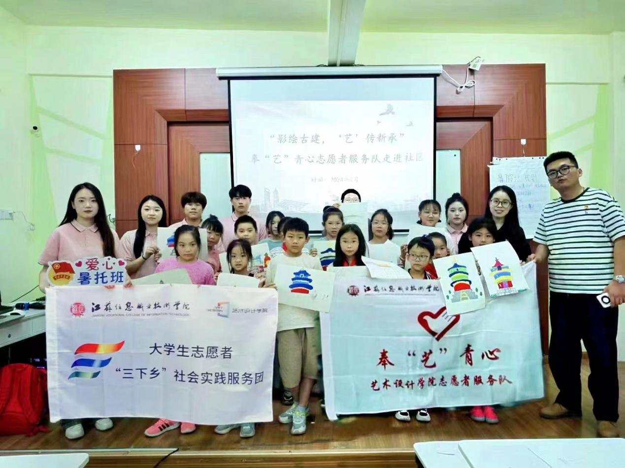 7月3日,艺术设计学院奉“艺”青心志愿服务队前往无锡市苏庙社区,为已放假的小学生们开展“影绘古建,‘艺’传新承”暑期社会实践活动。