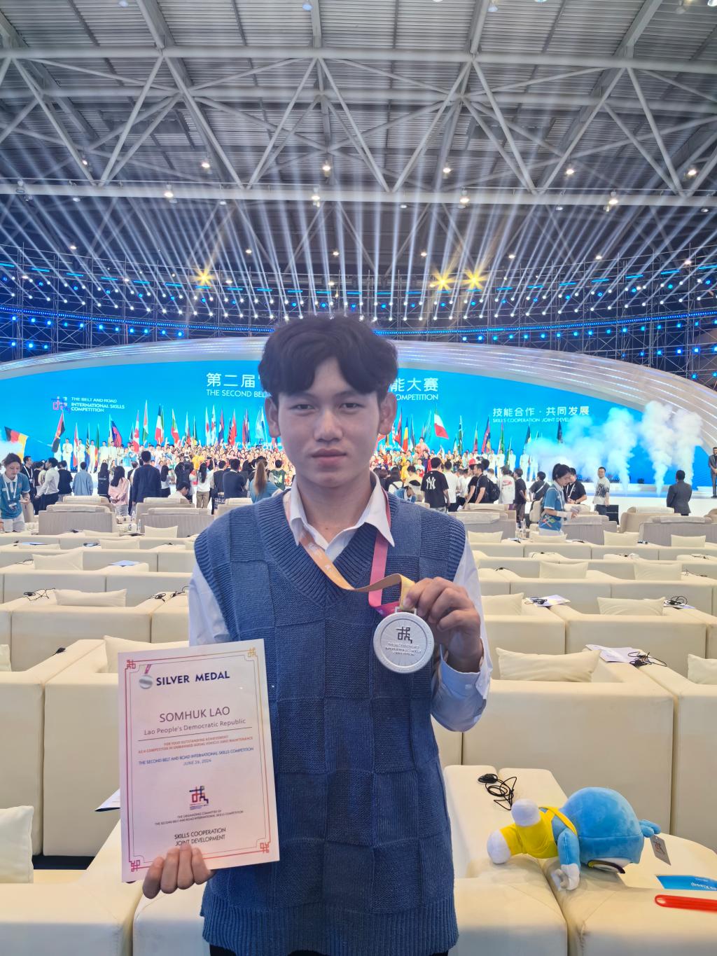 6月,第二届“一带一路”国际技能大赛在重庆举办,我校留学生浩然(SOMHUK LAO)以老挝国家队员的身份参赛,获得无人机装调检修赛项银牌,这是老挝国家队迄今为止在“一带一路”国际技能竞赛中获得的最高荣誉。