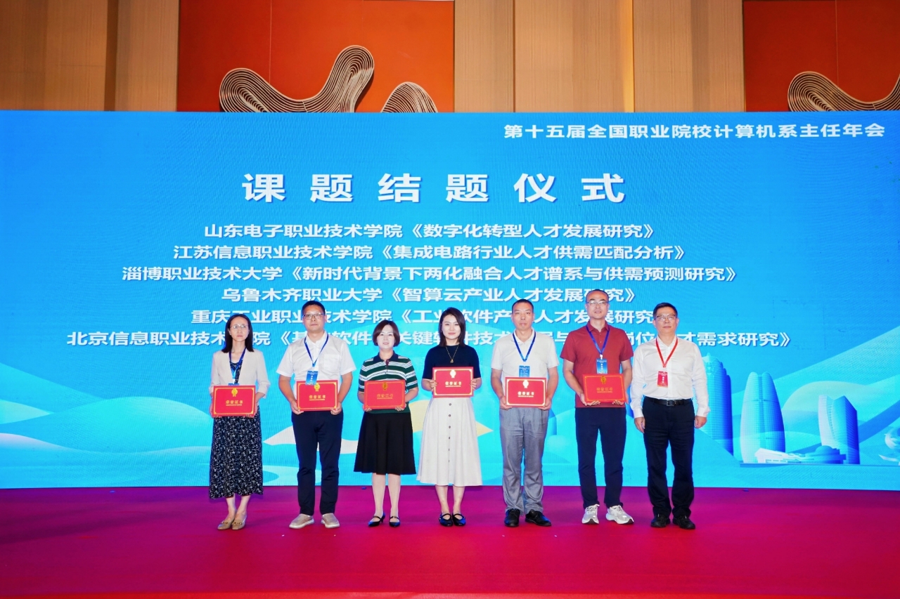 会上,工信部教育与考试中心为教指委2024年度第一批6项研究课题颁发结题证书。我校主持的课题《集成电路行业人才供需匹配分析》顺利结题。
