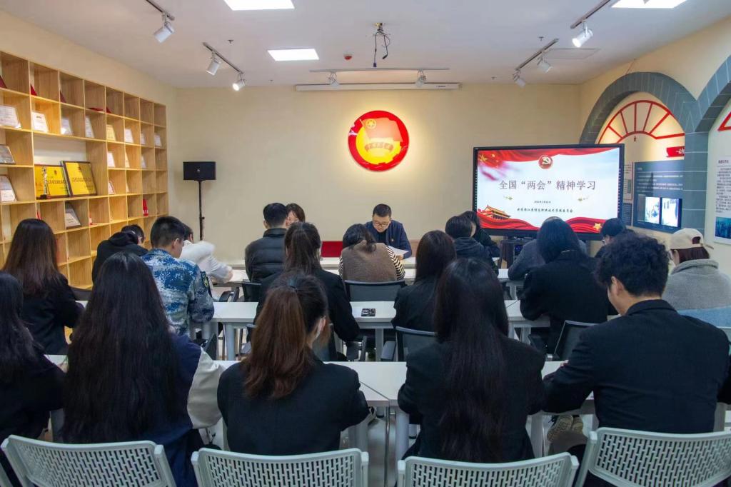 校团委副书记钱波主持并领学《习近平总书记在第十四届全国人民代表大会第一次会议上的讲话》和2023年《政府工作报告》。校团委书记王玮在总结发言时提出:全校各级团组织要乘“势”而上,通过喜闻乐见的形式,引导青年学生准确理解、全面把握“两会”精神;要顺“势”而为,做好调查研究,聚焦解决青年学生“急难愁盼”问题;要聚“势”而强,围绕学校高质量发展要求,不断提升团组织的大局贡献度。