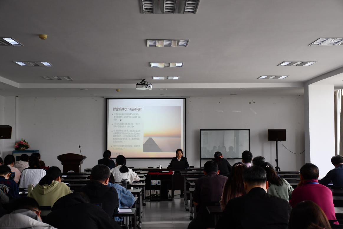 活动邀请了江苏神阙律师事务所刘焕玲律师为商学院全体教职员工和学生党员、入党积极分子做了题为《远离财富陷阱,依法寻求救济》的金融普法讲座,旨在提高大家的金融法律素养,增强风险防范意识,确保广大师生财产安全。