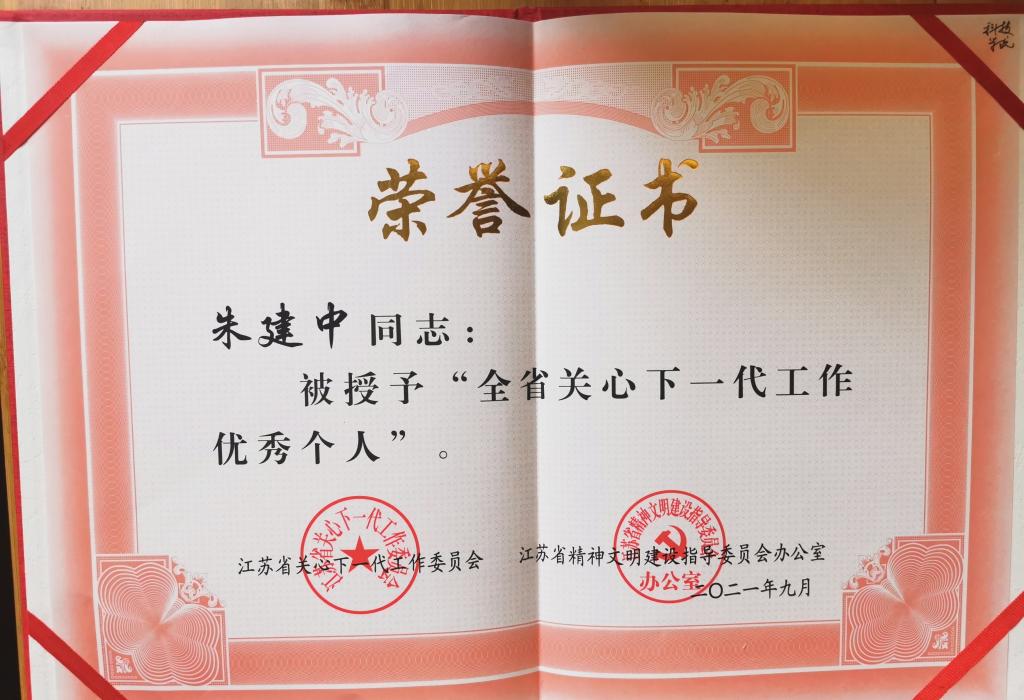 近日,江苏省关心下一代工作委员会、江苏省精神文明建设指导委员会办公室下发了《关于表扬全省关心下一代工作优秀集体和优秀个人的通报》,商学院关工委委员、无锡市关工委讲师团成员朱建中同志被授予“全省关心下一代工作优秀个人”。