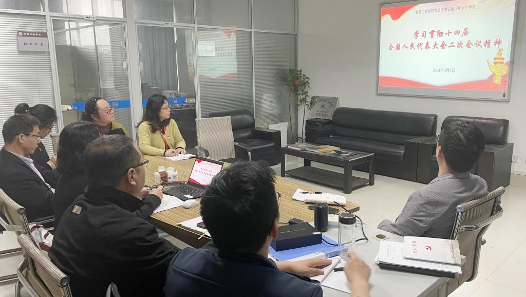 4月3日,智能工程学院党总支召开党总支中心组(扩大)学习会,专题学习2024年全国两会精神,以及习近平总书记参加江苏代表团审议时的重要讲话精神。会议由智能工程学院党总支书记甘辉主持。